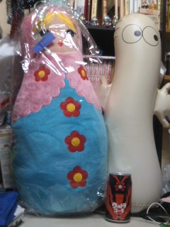 母親に、「誕生日プレゼント」と称してもらったマトリョーシカのぬいぐるみと、何年か前に買った福袋に入っていたニョロニョロと、サイズ比較用のコーラです。